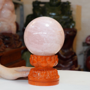 Quả cầu Thạch Anh hồng 1A 3,65kg – 13,5cm + đế gỗ hình sen