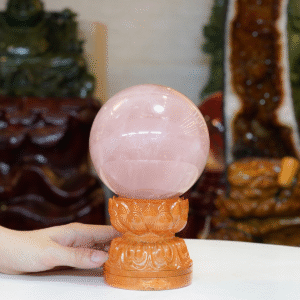 Quả cầu Thạch Anh hồng 2A 2,2kg – 11,4cm + đế gỗ hình sen