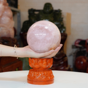 Quả cầu Thạch Anh hồng A 3,2kg – 13,1cm + đế gỗ hình sen