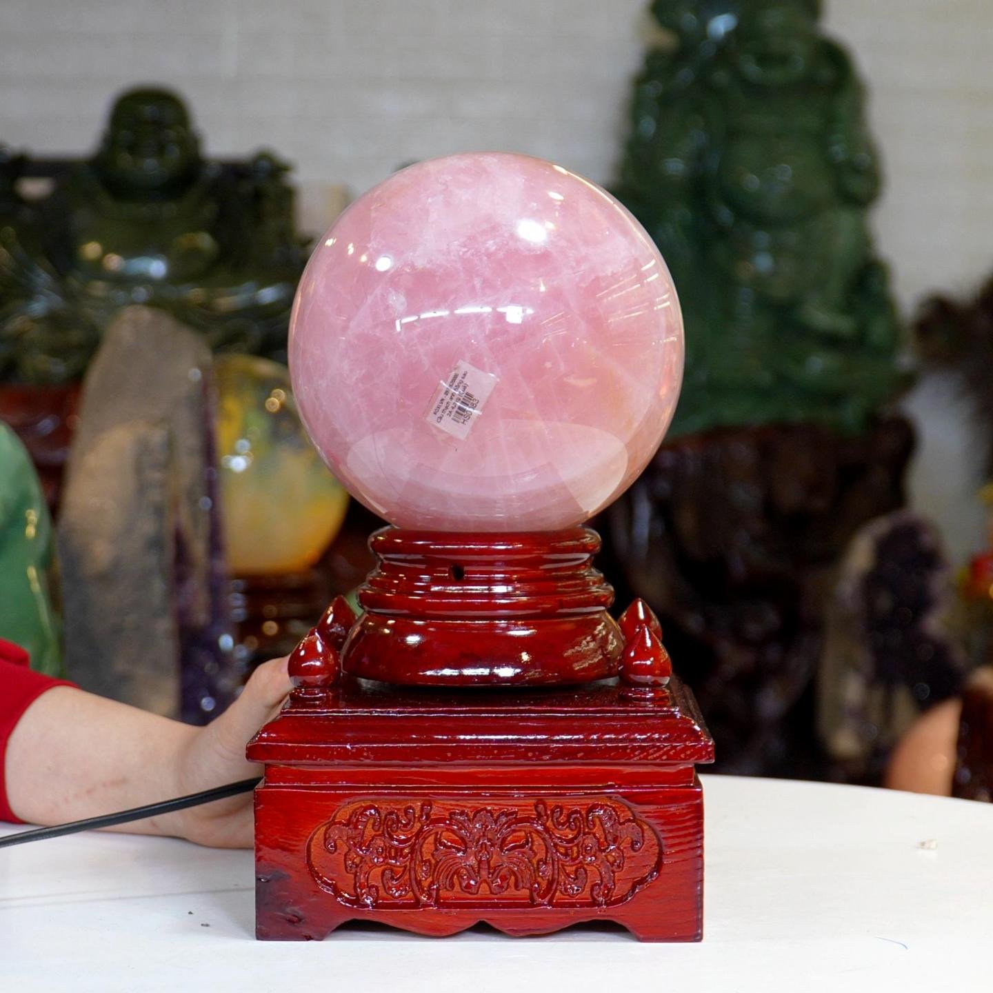 Quả cầu Thạch Anh hồng sao 2A 4,3kg – 14,3cm + đế đèn xoay