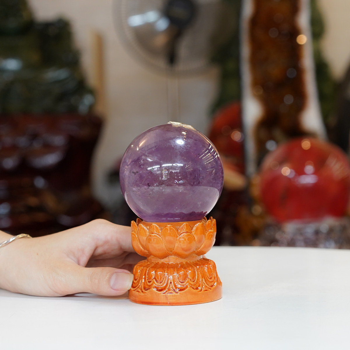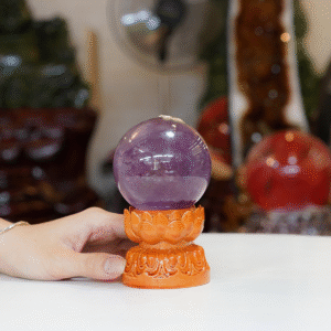 Quả cầu thạch anh tím 0,58kg + đế hình sen