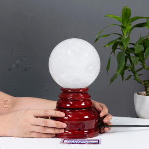 Quả cầu Thạch Anh trắng 1A – 2,9kg – 12,6cm + đế đèn xoay