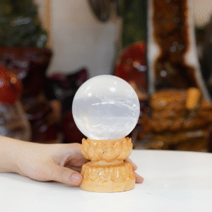Quả cầu Thạch Anh trắng 2A 0,74kg – 8,2cm + đế hình sen