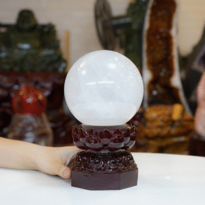 Quả cầu Thạch Anh trắng 2A 2,84kg – 12,8cm + đế hình sen