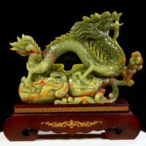 Tác phẩm Rồng phong thủy ngọc onyx xanh 52cm
