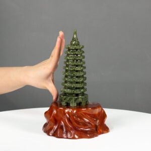 Tháp văn xương ngọc Serpentine xanh 18cm