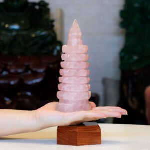 Tháp văn xương thạch anh hồng 0,79kg – 17,5cm