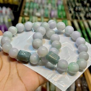 Vòng ngọc cẩm thạch A phớt táo , đáy nền tím 13ly mix lục tự lam ngọc