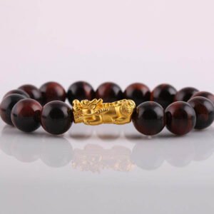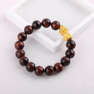 Vòng Tay Đá Mắt Hổ Đỏ 1A 12 Mix Charm Tỳ Hưu Tài Lộc Vàng 24k 22