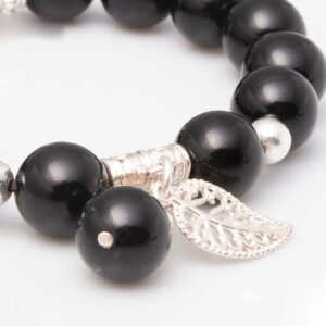 Vòng Tay Đá Núi Lửa Obsidian 10 Mix Charm Lá Treo Bạc 999 BLT01