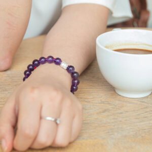 Vòng Tay Thạch Anh Tím 2A 9 Mix Charm Đầu Phật Bạc 999