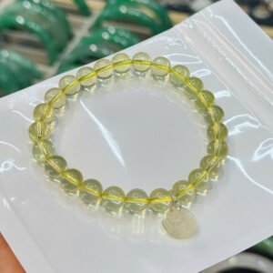 Vòng thạch anh vàng 7,3ly mix charm hoa sen, móc bạc